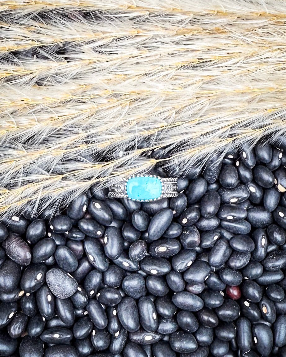 Whether you wear it solo as a statement ring or stack it with other silver favorites, the Abha Turquoise Ring blends seamlessly into your collection. It pairs easily with casual denim, flowy dresses, or even something more polished—it’s that rare piece that adapts to your style while keeping its own distinctive character.
