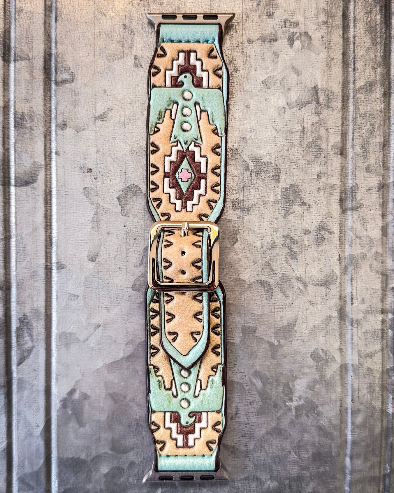 Each band features intricate western patterns, from classic tooled leather motifs to bold southwestern prints, adding a distinctive flair to your wrist. Inspired by the beauty of the open range, the craftsmanship of cowboy culture, and the timeless appeal of western fashion, these bands seamlessly blend tradition with modern technology. Whether you prefer earthy tones reminiscent of desert landscapes, rich leather textures, or vibrant turquoise and serape designs, there's a band to match your unique aesthetic.