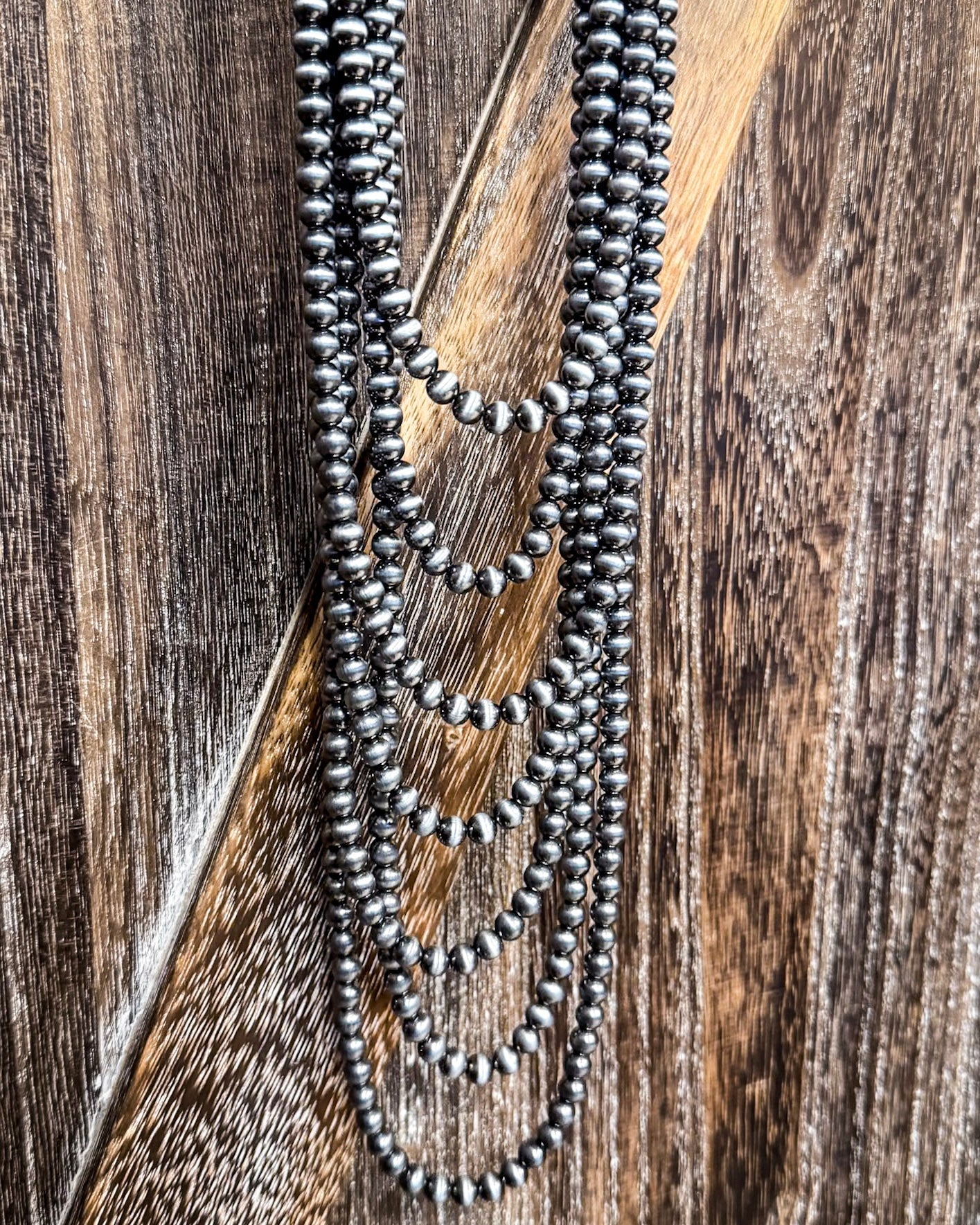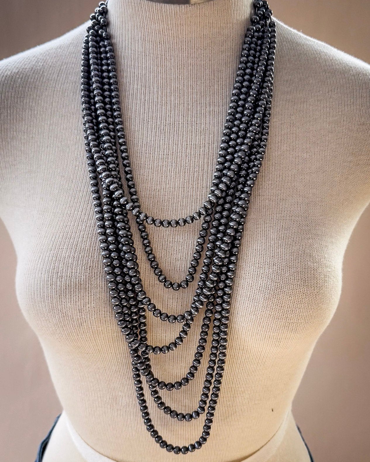 Elevate your accessory game with our Faux Navajo Pearl Layered Necklace, where classic western charm meets modern style. This stunning piece features a beautiful combination of faux Navajo pearl layers, creating a visually captivating look.