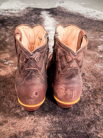 The F toe design adds a classic Western-inspired touch to the bootie, while the stylish heel provides just the right amount of lift. The combination of these elements creates a silhouette that is both flattering and functional. Whether you're walking through the city, attending an event, or spending a casual day out, this bootie is sure to turn heads and draw compliments.