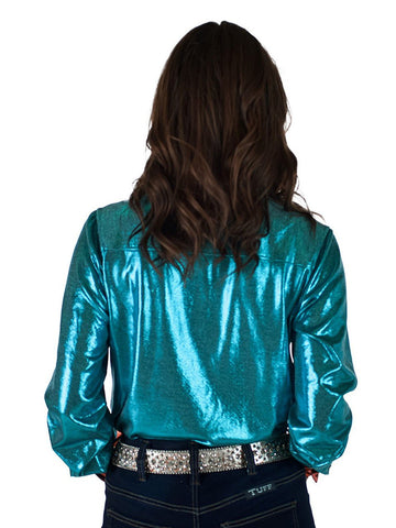 When you need a top that brings it—shine, style, and comfort—The Canyon Lights Zip is here to deliver. With its vibrant turquoise metallic body, rust contrast accents, and sporty zip front, this long sleeve was made for the spotlight. Whether you're headed to the rodeo, hopping in the saddle, or showing up for a night out with western flair, this top is all about high-impact style with zero effort.