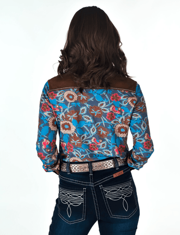 From the arena to everyday life, this pullover holds its own. It’s got the charm of a classic Western button-up, but with thoughtful features that truly work for how you move. Let’s start with the fit: it’s tailored just right with a sleek silhouette, but there’s real comfort in the stretch fabric that lets you move freely without restriction. No stiff shoulders here. The custom-designed vintage floral body paired with a brown suede yoke adds structure and style in all the right places, while still keeping that vintage Western soul.