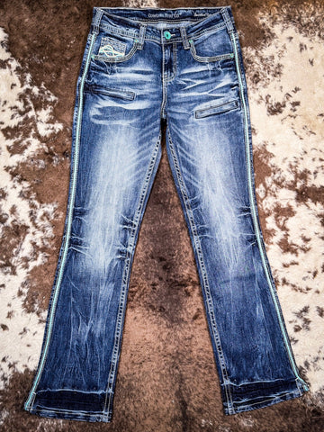 Cowgirl Tuff Twisted Turquoise Bootcut Jeans – A Must-Have for Turquoise Lovers!