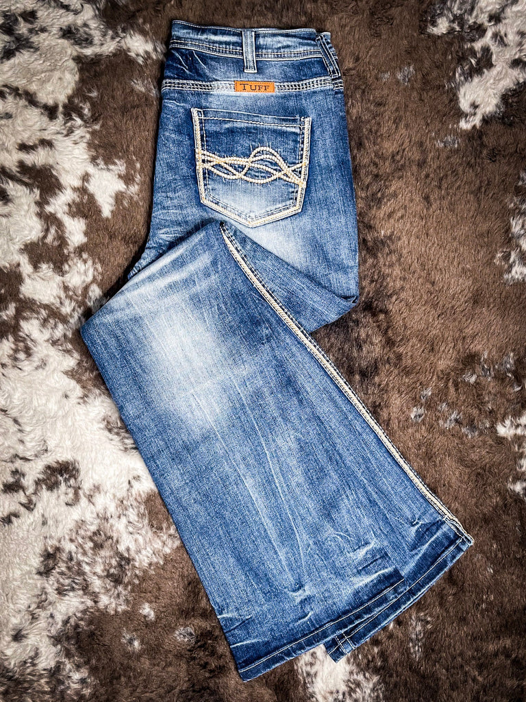 But the real showstopper? That twisted whipstitching in cream and tan that runs down both relaxed fit legs. It adds texture, dimension, and a whole lotta style to an otherwise laid-back jean. It’s the kind of detail that makes people stop and say, “Where’d you get those?”