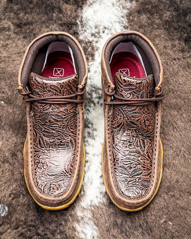 Classic, versatile, and built for comfort—the Eloise Chukka Driving Moc in Brown by Twisted X is a timeless style with a little extra detail to set it apart. The embossed brown leather print adds subtle western flair, while the chukka silhouette keeps things sleek and easy to wear every day.