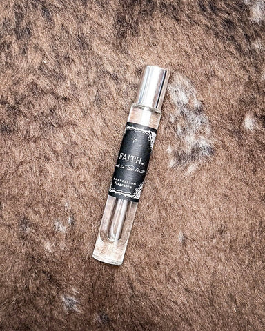 Packaged in a sleek 10 ml glass roll-on vial, Faith is travel-friendly and easy to slip into your purse, clutch, or even your pocket. Just a quick swipe on your pulse points—wrists, neck, collarbone—and you’re ready to go. No mess, no fuss, just a fragrance that feels as natural and layered as you are.