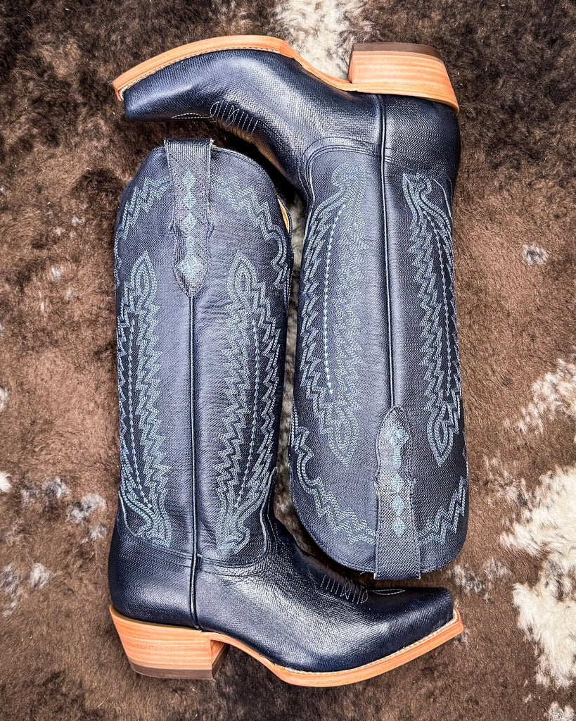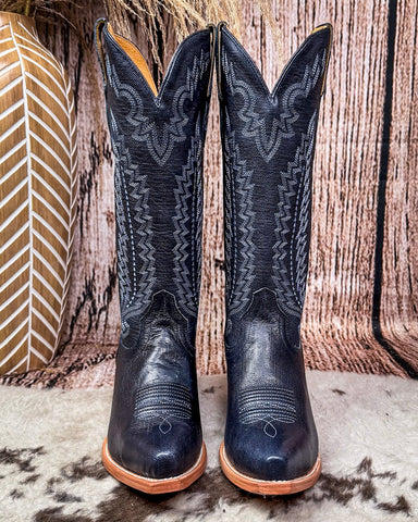 Striking and sophisticated, the Harper Black Star Boot in Sapphire brings western tradition to life in a bold new shade. With its tall leather shaft, elegant snip toe, and refined stitching, this boot is made to stand out.