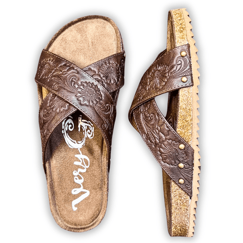Introducing the Jaycee Sandals by Very G, where classic Western charm meets modern comfort in every step. These slip-on sandals redefine casual elegance with their timeless design and luxurious embossed leather top, making them an essential addition to any wardrobe. Designed for those who appreciate both style and function, the Jaycee Sandals effortlessly blend intricate craftsmanship with everyday practicality.