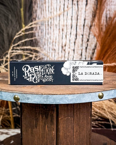 Bold, golden, and unforgettable—the La Dorada Roll-On Perfume Oil by R. Rebellion captures the soul of the West in a sleek, travel-ready vial. Blending smoky woods with bright citrus and deep resins, this fragrance is equal parts luminous and grounded, made for those who carry a quiet strength everywhere they go.