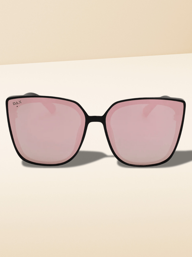 Pink Polarized: A matte black frame with pretty pink lenses. Soft, flirty, and just the right amount of sass 💖