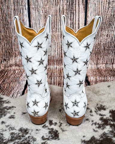 {"id":7366732808290,"title":"Marfa Black Star Leather Boots - Ice and Silver","handle":"marfa-black-star-leather-boots-ice-and-silver","description":"\u003cp data-start=\"192\" data-end=\"226\"\u003e\u003cstrong data-start=\"192\" data-end=\"226\"\u003eMarfa Black Star Leather Boots\u003c\/strong\u003e\u003c\/p\u003e\n\u003cp data-start=\"228\" data-end=\"518\"\u003eThe Marfa Black Star Leather Boots are what happens when bold design meets timeless western soul. Whether you're headed to a show, stepping out downtown, or just feel like turning heads, these boots bring that something special. They don’t whisper—they speak loud and clear with every step.\u003c\/p\u003e\n\u003cp data-start=\"520\" data-end=\"934\"\u003eCrafted by Black Star with high-quality leather from top to bottom, the Marfa boots are made to be seen. That rich leather vamp and shaft? It’s detailed with bold inlay work and finished with metal star studs that give just the right amount of edge. The pattern pops without being overdone—perfect for those who want something unique but wearable. They’re effortlessly cool, a little glam, and full of personality.\u003c\/p\u003e\n\u003cp data-start=\"936\" data-end=\"1380\"\u003eWith a snip toe silhouette and a 12” shaft height, the shape is classic, flattering, and easy to wear with everything from denim to dresses. Inside, it’s all about comfort—because looking good shouldn’t mean sacrificing how you feel. The leather lining feels smooth and breathable, while the CellSole® footbed with CellStretch® comfort tech gives that cloud-like feel in the forefoot and heel. These are boots you can stand, dance, and live in.\u003c\/p\u003e\n\u003cp data-start=\"1382\" data-end=\"1657\"\u003ePull tabs make them easy to slip on, while the single-stitched welt and steel shank give you durability that holds up to real wear. A leather outsole and a 2” western heel—topped off with a rubber heel cap for traction—round things out with stability and a little extra lift.\u003c\/p\u003e\n\u003cp data-start=\"1659\" data-end=\"1891\"\u003eThe Marfa boot doesn’t try too hard. It doesn’t need to. It’s equal parts bold and wearable, with a vibe that works just as well at a concert as it does on a casual Saturday. It’s a go-to pair that makes any outfit feel intentional.\u003c\/p\u003e\n\u003cp data-start=\"1893\" data-end=\"2172\"\u003eNamed after the tiny Texas town with an outsized spirit, the Marfa boot channels creativity, confidence, and a little bit of cosmic magic. It’s for the women who love to mix classic western with a modern twist—who dress for themselves and love standing out without saying a word.\u003c\/p\u003e\n\u003cp data-start=\"2174\" data-end=\"2186\"\u003e\u003cstrong data-start=\"2174\" data-end=\"2186\"\u003eDetails:\u003c\/strong\u003e\u003c\/p\u003e\n\u003cul data-start=\"2187\" data-end=\"2552\"\u003e\n\u003cli data-start=\"2187\" data-end=\"2255\"\u003e\n\u003cp data-start=\"2189\" data-end=\"2255\"\u003eLeather vamp and shaft with leather inlay and metal stud accents\u003c\/p\u003e\n\u003c\/li\u003e\n\u003cli data-start=\"2256\" data-end=\"2276\"\u003e\n\u003cp data-start=\"2258\" data-end=\"2276\"\u003e12\" shaft height\u003c\/p\u003e\n\u003c\/li\u003e\n\u003cli data-start=\"2277\" data-end=\"2289\"\u003e\n\u003cp data-start=\"2279\" data-end=\"2289\"\u003eSnip toe\u003c\/p\u003e\n\u003c\/li\u003e\n\u003cli data-start=\"2290\" data-end=\"2315\"\u003e\n\u003cp data-start=\"2292\" data-end=\"2315\"\u003eSmooth leather lining\u003c\/p\u003e\n\u003c\/li\u003e\n\u003cli data-start=\"2316\" data-end=\"2345\"\u003e\n\u003cp data-start=\"2318\" data-end=\"2345\"\u003eEasy-on leather pull tabs\u003c\/p\u003e\n\u003c\/li\u003e\n\u003cli data-start=\"2346\" data-end=\"2425\"\u003e\n\u003cp data-start=\"2348\" data-end=\"2425\"\u003eCellSole® footbed with CellStretch® comfort technology in forefoot and heel\u003c\/p\u003e\n\u003c\/li\u003e\n\u003cli data-start=\"2426\" data-end=\"2463\"\u003e\n\u003cp data-start=\"2428\" data-end=\"2463\"\u003eSingle-stitched welt construction\u003c\/p\u003e\n\u003c\/li\u003e\n\u003cli data-start=\"2464\" data-end=\"2491\"\u003e\n\u003cp data-start=\"2466\" data-end=\"2491\"\u003eSteel shank for support\u003c\/p\u003e\n\u003c\/li\u003e\n\u003cli data-start=\"2492\" data-end=\"2552\"\u003e\n\u003cp data-start=\"2494\" data-end=\"2552\"\u003eLeather outsole with 2\" western heel and rubber heel cap\u003c\/p\u003e\n\u003c\/li\u003e\n\u003c\/ul\u003e","published_at":"2025-06-17T15:36:52-04:00","created_at":"2025-06-17T14:23:16-04:00","vendor":"Black Star","type":"Women's Shoes","tags":["7\/1\/2025","boot","boots","cowboy boot","Cowboy boots","cowgirl boot","drop ship","IP: Dropship","shoe","shoes","Twisted X","twisted x boot","western boot"],"price":31995,"price_min":31995,"price_max":31995,"available":true,"price_varies":false,"compare_at_price":null,"compare_at_price_min":0,"compare_at_price_max":0,"compare_at_price_varies":false,"variants":[{"id":41998190444642,"title":"5.5","option1":"5.5","option2":null,"option3":null,"sku":"WBSN036-55","requires_shipping":true,"taxable":true,"featured_image":{"id":32577942945890,"product_id":7366732808290,"position":1,"created_at":"2025-06-17T15:35:49-04:00","updated_at":"2025-10-28T14:00:07-04:00","alt":"Marfa Black Star Leather Boots - Ice and Silver - Women's Shoes - Black Star - Bronco Western Supply Co.","width":1277,"height":1596,"src":"\/\/www.broncowesternsupply.com\/cdn\/shop\/files\/marfa-black-star-leather-boots-ice-and-silver-6870282.jpg?v=1761674407","variant_ids":[41998190444642,41998190477410,41998190510178,41998190542946,41998190575714,41998190608482,41998190641250,41998190674018,41998190706786,41998190739554,41998190772322]},"available":true,"name":"Marfa Black Star Leather Boots - Ice and Silver - 5.5","public_title":"5.5","options":["5.5"],"price":31995,"weight":1406,"compare_at_price":null,"inventory_quantity":0,"inventory_management":"shopify","inventory_poli