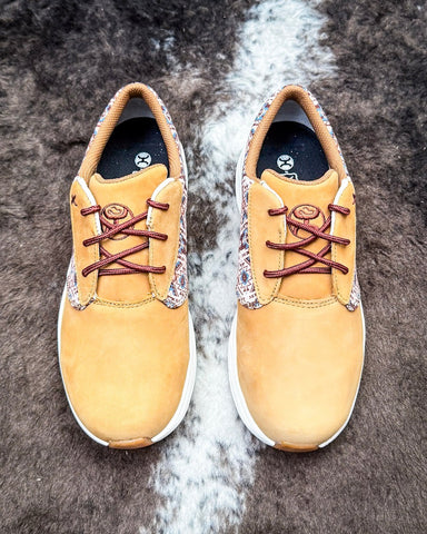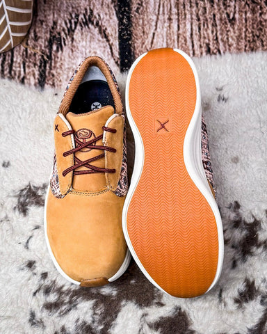 Lightweight comfort meets bold style in the Mira Twisted X Feather X Slip-On Shoe in Beeswax & Aztec Multi. With its warm leather upper and colorful Aztec-inspired fabric, this shoe is a perfect mix of everyday wearability and standout design.