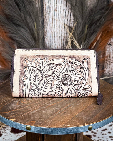 Bring timeless Western charm to your everyday essentials with the Myra Bag - Brown Buds Wallet. This beautifully designed wallet captures the rich, earthy tones of the desert in a soft, natural palette, making it a versatile accessory for any cowgirl or rustic soul.