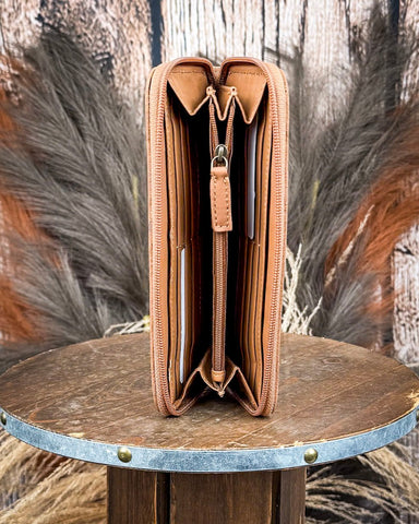 Whether you're a cowgirl with a wild soul or just a person who loves Western flair, this wallet brings just the right mix of rugged style and refined detail. Its structured design maintains its shape, while the tooled leather offers rich texture and personality that only gets better with time.