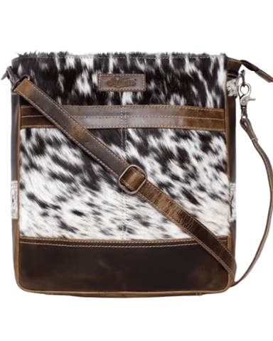 Crafted from natural brindle hair-on-hide and genuine leather, each bag is completely unique. The spotted pattern is striking and earthy, paired with antique-finish metal fittings that add just the right amount of rugged charm. Over time, the materials will soften and patina beautifully, telling their own story as they wear.