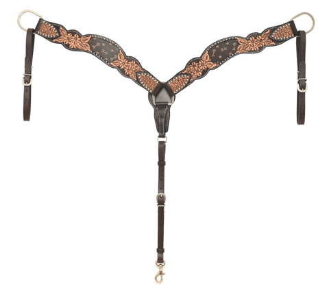 The breast collar mirrors that same detailed tooling, with wide straps that sit comfortably across the chest and adjust easily on both sides. The center chest piece pulls it all together with a clean, confident shape that shows off both form and function. Whether you're hitting the trail or turning and burning, this piece holds steady and looks dang good doing it.