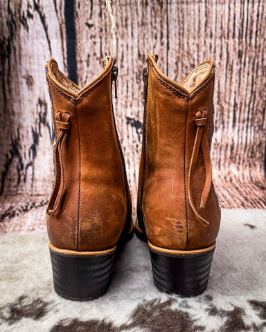 Add a little edge to your everyday with the Free Spirit Bootie by Wrangler. With its mix of leather and bold patterned fabric, this bootie blends modern flair with timeless western style.