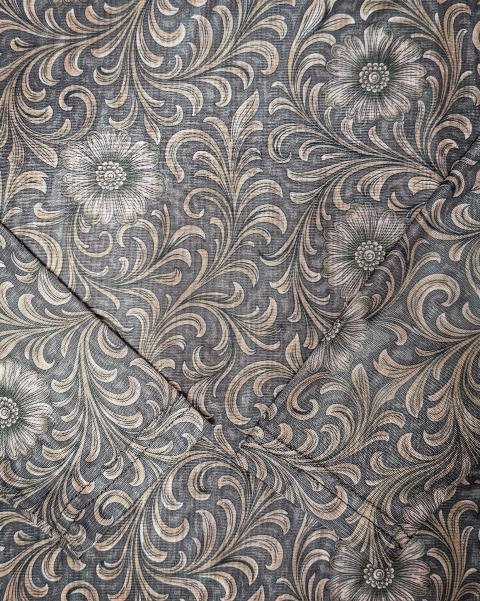 - Allover floral tooled-inspired print