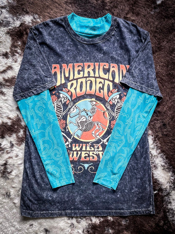 Saddle up in style with the Cowgirl Thing Mesh Top! This turquoise mesh top features a playful white boot stitch print, adding a touch of western flair to your wardrobe. Perfect for any occasion, it's sure to make you stand out in the best possible way. Yee-haw!