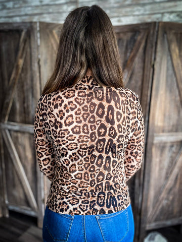 Fierce, fun, and impossible to ignore—the Hear Me Roar Mesh Top by Sterling Kreek is all about confidence. With its bold leopard print and body-hugging fit, this sheer long-sleeve top brings just the right amount of wild to your western wardrobe. Whether you’re layering it up or letting it shine on its own, this top adds instant edge to any outfit.