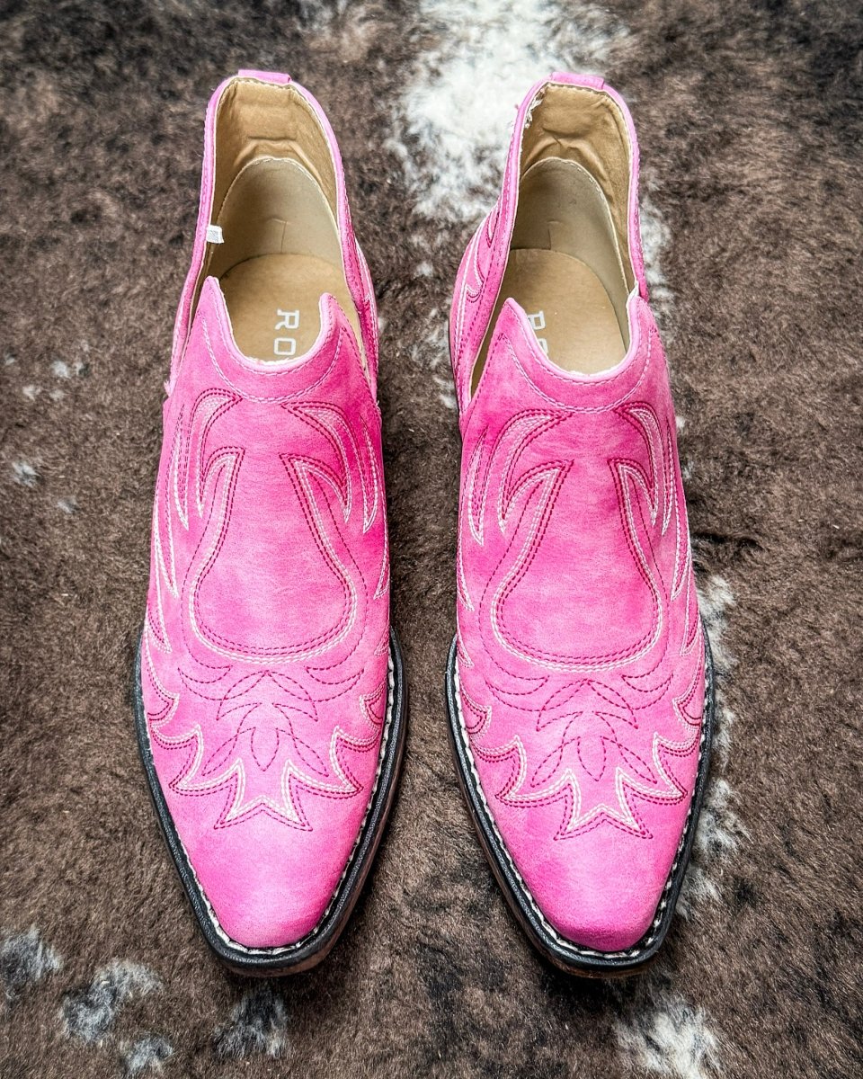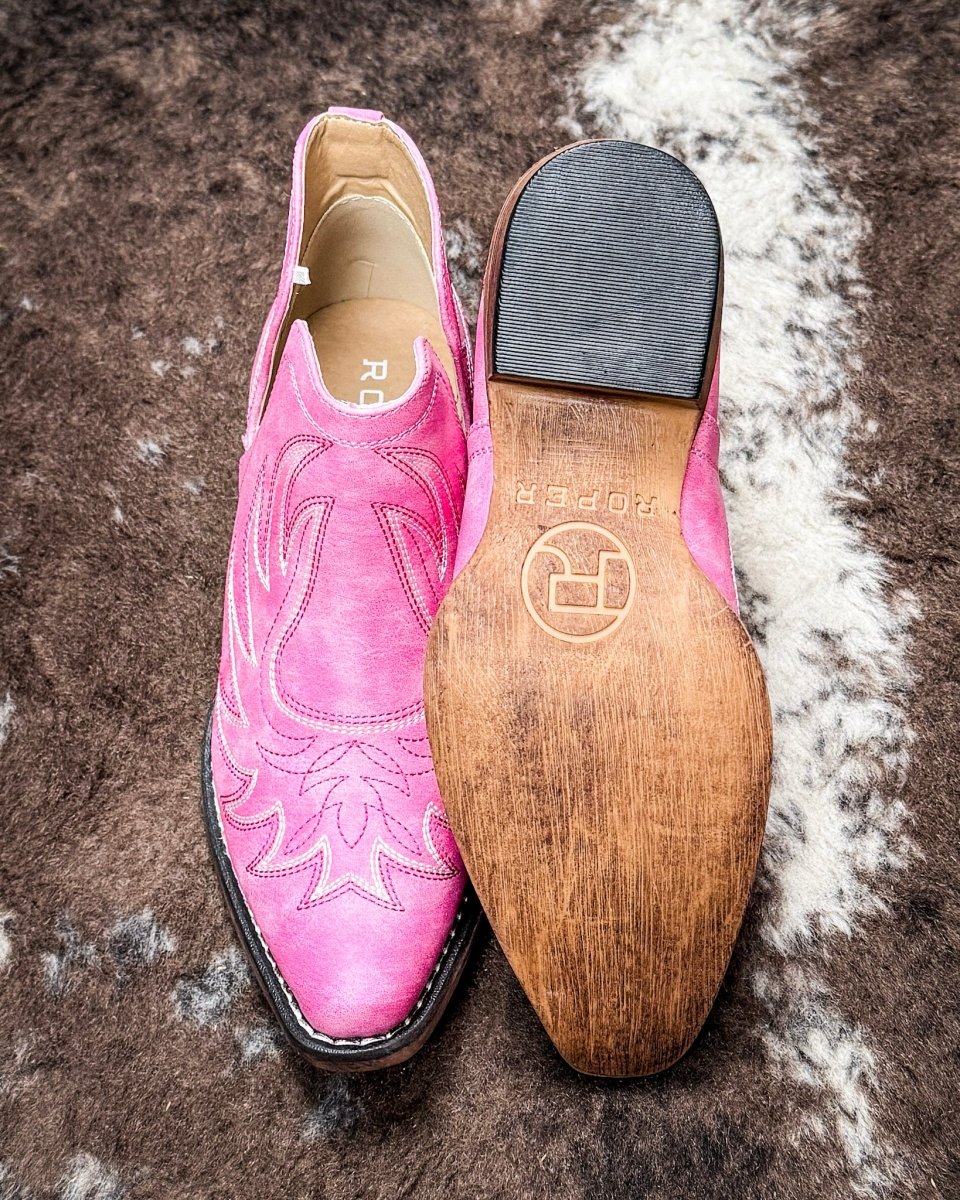The Ava Vintage Booties in Pink by Roper are here to bring a playful pop to your lineup. Made with soft faux leather and detailed with classic western stitching, these ankle booties blend bold color with vintage charm. The low 1.5" heel and padded comfort insole make 'em an easy choice for all-day wear, while the flexible TPR outsole keeps things light and walkable. Whether you're dressing up denim or adding a twist to a sundress, these pink booties bring the fun without sacrificing comfort.