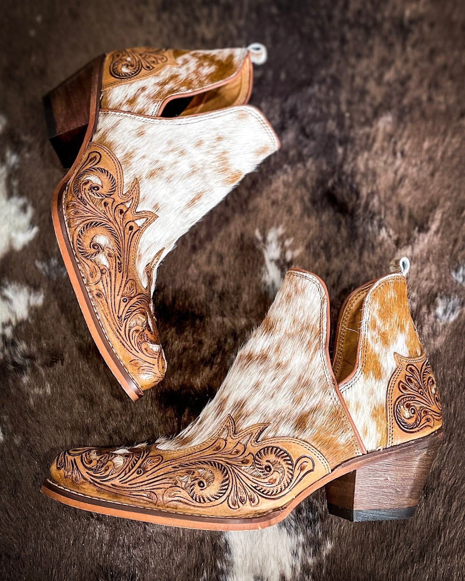 Say hello to the Horse Jane Bootie—a perfect blend of bold beauty and everyday comfort. These handcrafted stunners bring together rich, hair-on-hide leather and intricate hand-tooled details for a look that’s equal parts modern western and effortlessly cool.