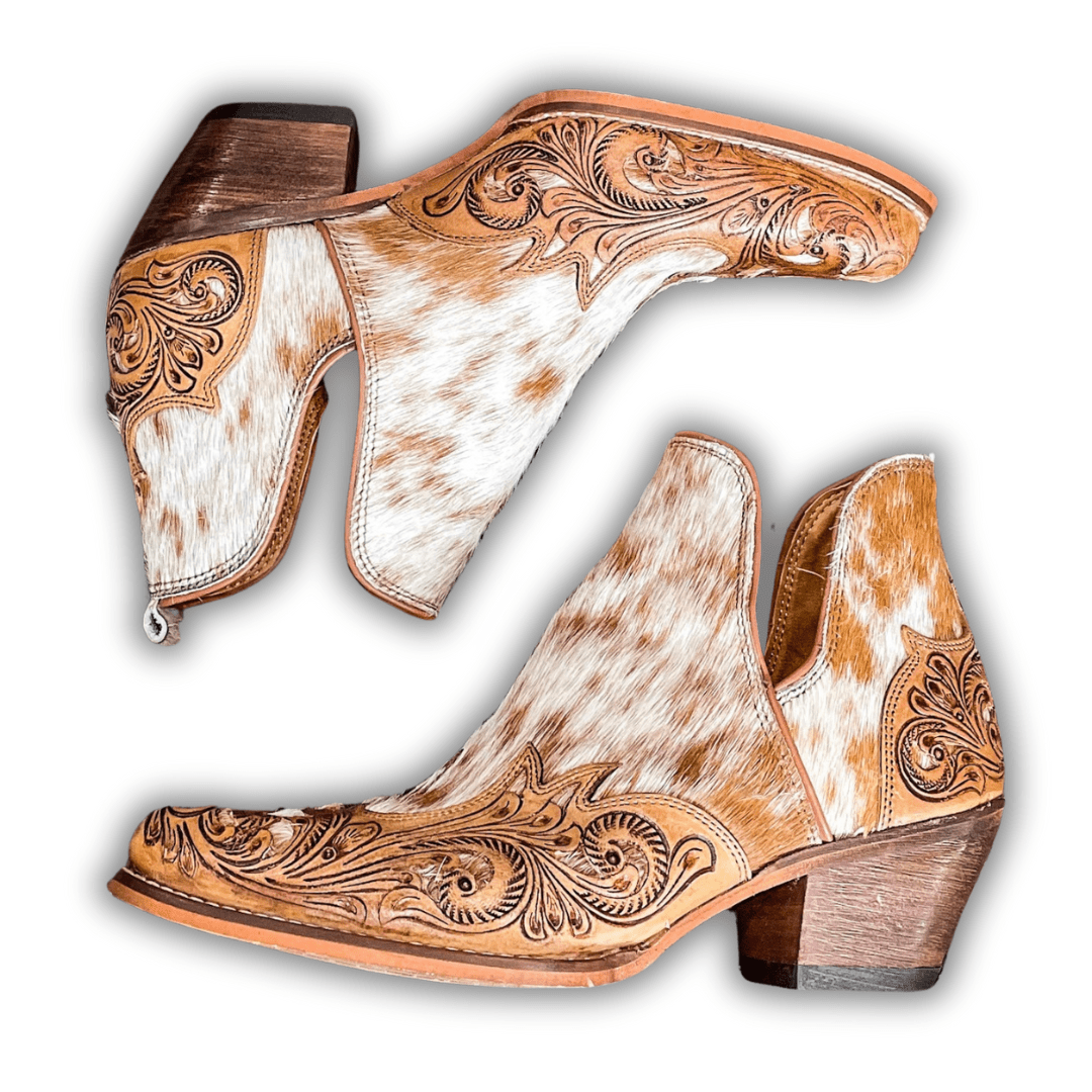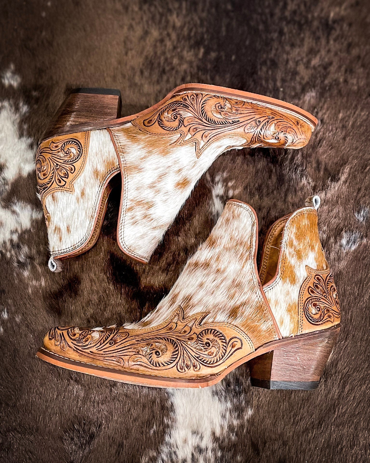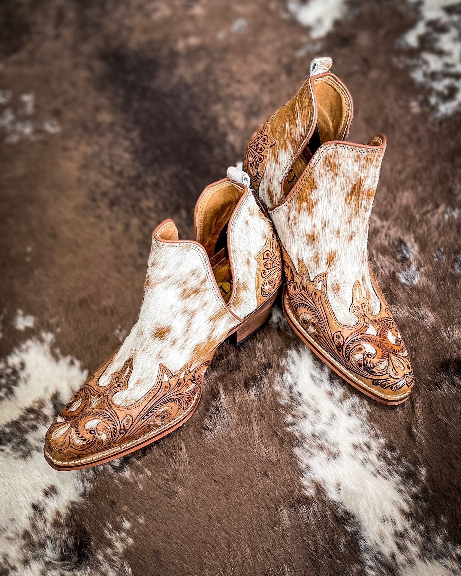 But let’s talk about what really sets the Horse Jane apart: that dreamy combo of hair-on-hide and hand-tooled leather. It’s a striking contrast in textures that feels just as luxe as it looks. The craftsmanship shines through with every detail—and since these are genuine hide, each pair is completely unique. Some may be more spotted, some more solid, some lighter or darker. It all depends on the hide, and that’s part of the charm. We make no guarantees on exact color or pattern—you may or may not receive the exact version pictured, but you will get a boot that’s totally one-of-a-kind.