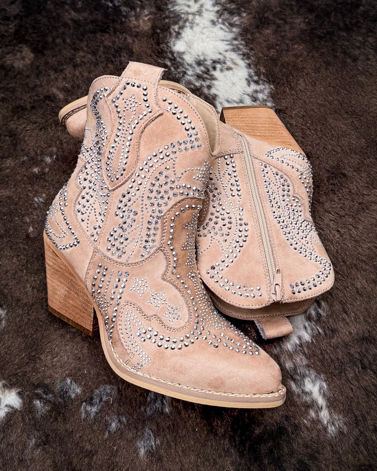 Looking for a comfy western bootie with some bling? The Parade Bling Ankle Bootie by Very G is made to shine. Covered in shimmering rhinestone embellishments and shaped with classic western curves, this boot is equal parts edgy and glam.
