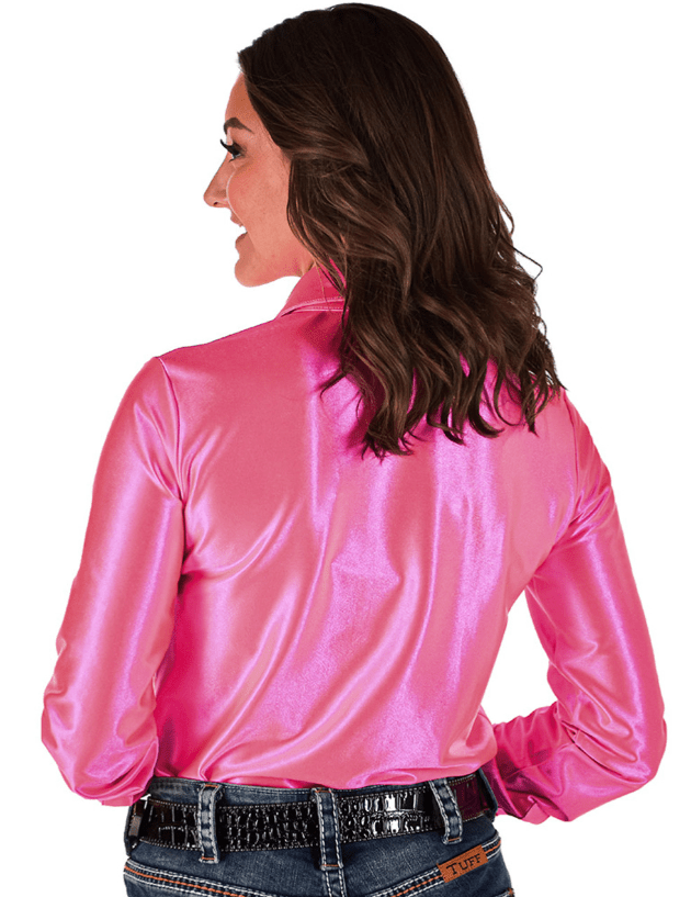 Cowgirl Tuff Satin Hustle Pullover Button Up in Hot Pink