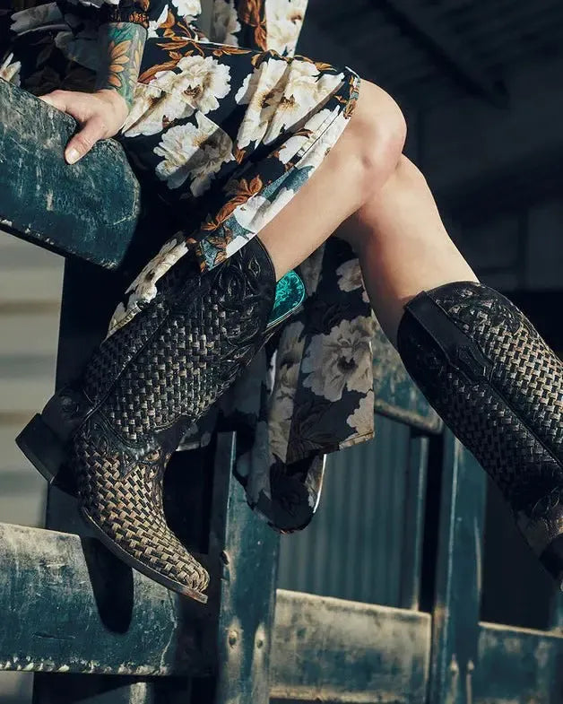 Corral + Circle G boots ship directly from the manufacturer, so please allow 7–14 business days for your order to hit the road. Good things take time—and trust us, these boots are worth it. These boots ship from the maker and must go to a physical address. No PO Boxes, please!Bold, classic, and full of texture—the Chocolate Canyonette Boots by Corral bring a deep, earthy tone to your favorite western silhouette. Featuring a handwoven basketweave design and signature overlay details, these boots strike the perfect balance of rugged and refined. The chocolate brown finish adds richness to any outfit, whether you're dressing up or keeping it casual.