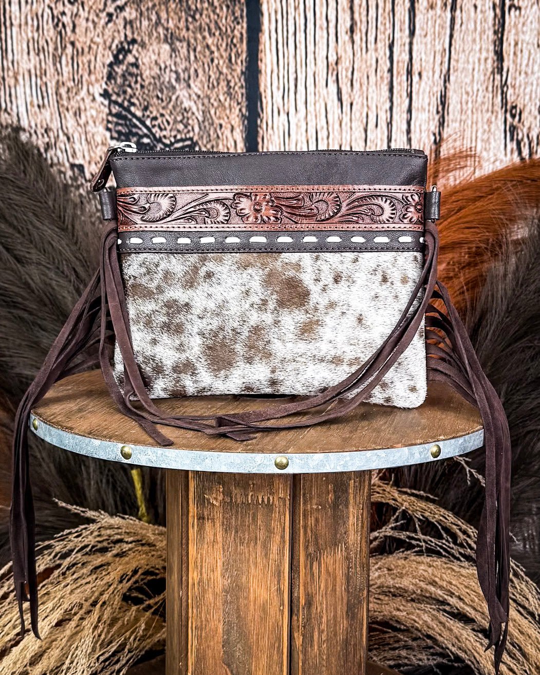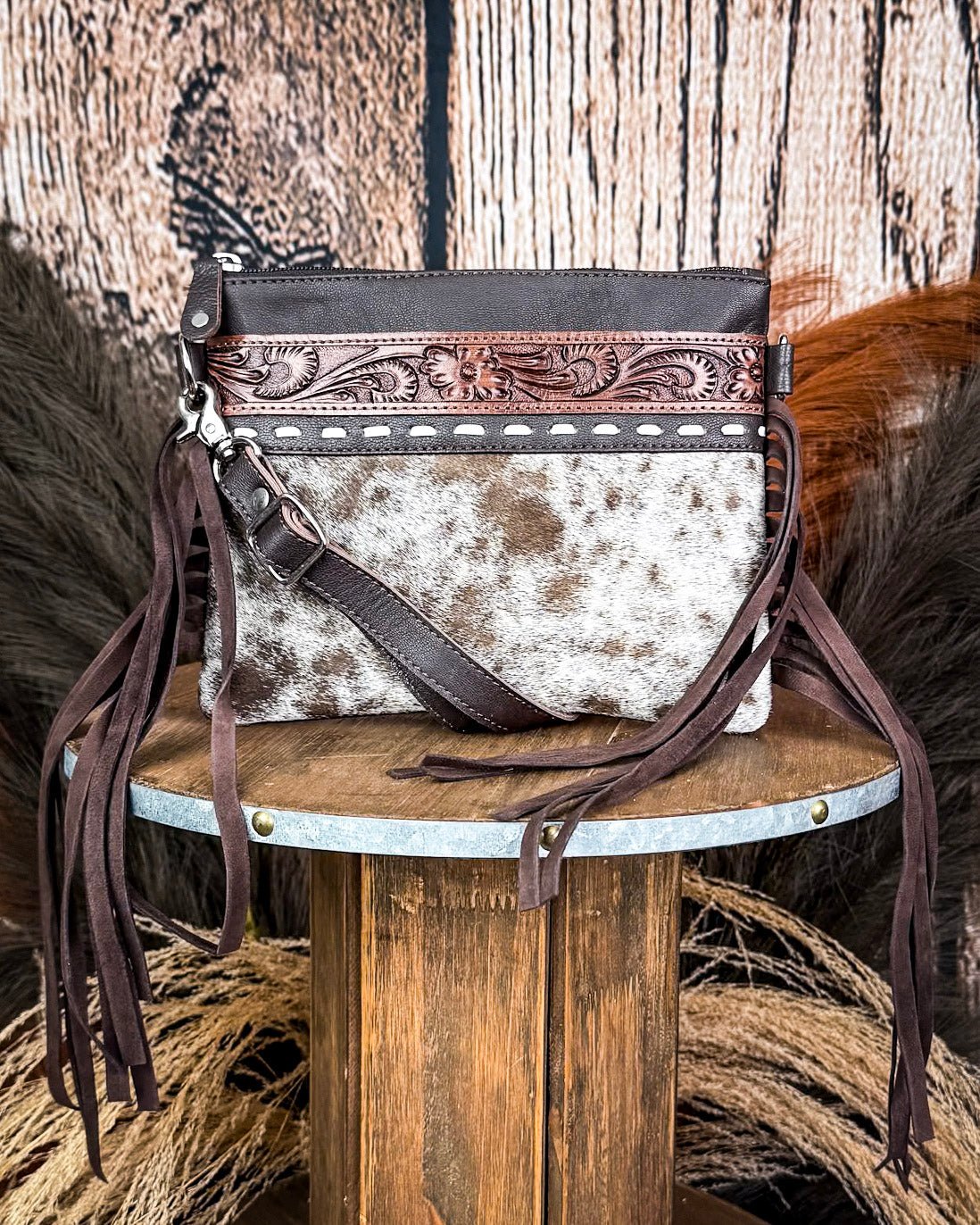 Made from genuine hair-on hide and soft leather, the Ardelle Crossbody is a bold mix of texture, movement, and western soul—with just the right touch of modern edge. She’s made for the woman who likes her style a little wild but still polished.