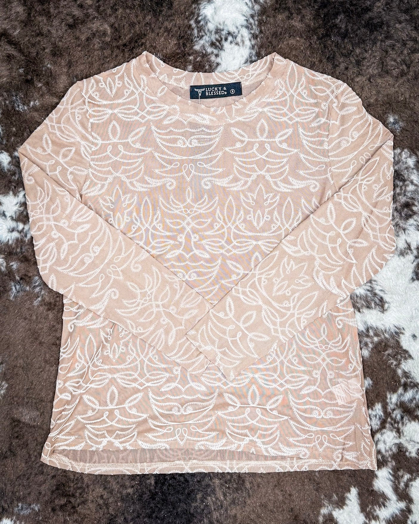 Made from breathable stretch mesh that hugs in all the right places, this semi-sheer stunner brings that modern western vibe to life with embroidered details that steal the show. We're talkin' intricate floral and saddle-stitch patterns all over—every thread giving a nod to classic western style, reimagined with a fresh, feminine twist.