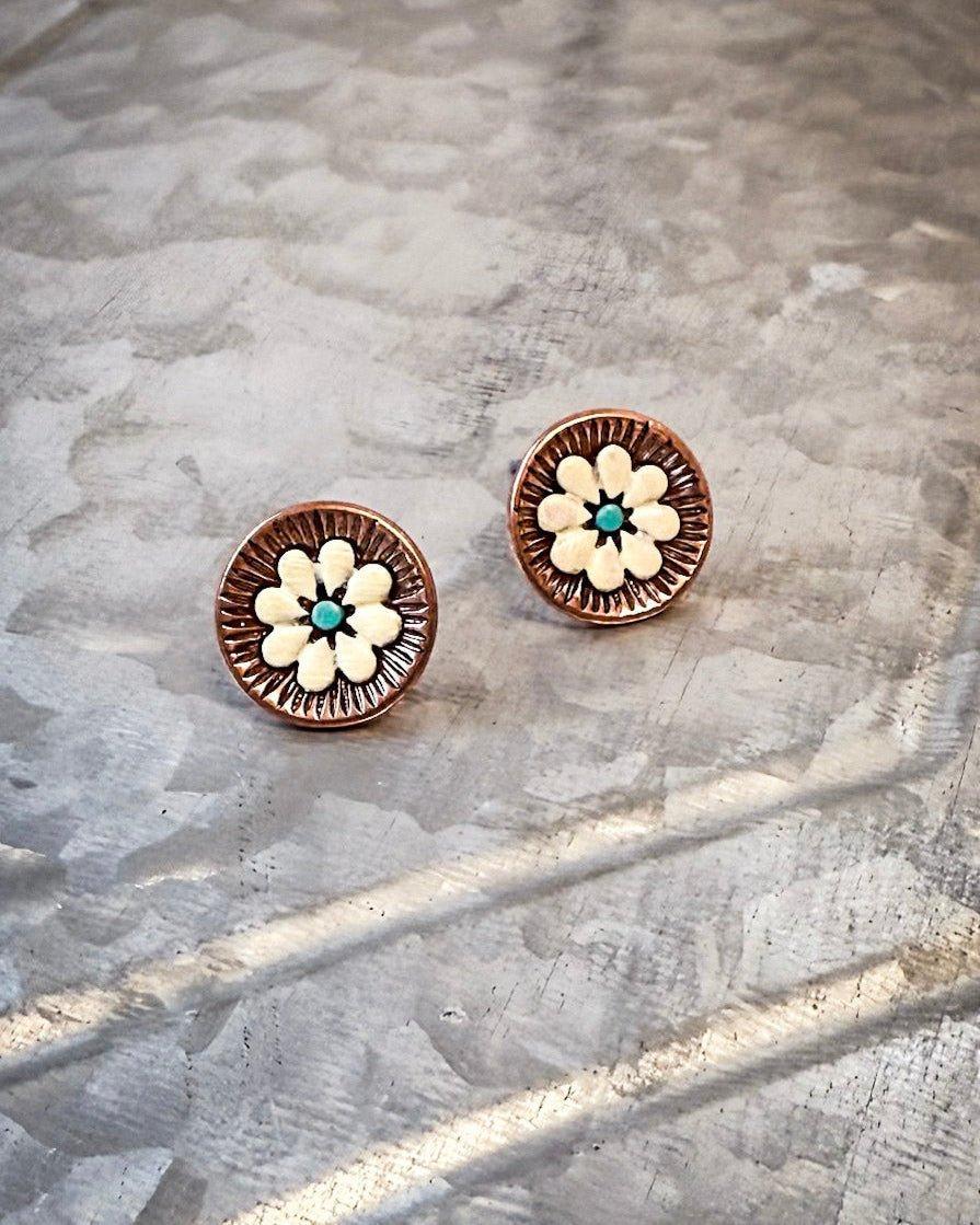 The Flourish Flower Stud Earrings bring a timeless rustic charm to your jewelry collection. Inspired by the beauty of the Wild West, these earrings capture both elegance and rugged spirit, making them the perfect accessory for anyone who appreciates classic western style. Whether you have a cowgirl soul or simply love a subtle touch of western flair, these earrings add a beautiful finishing touch to any look.