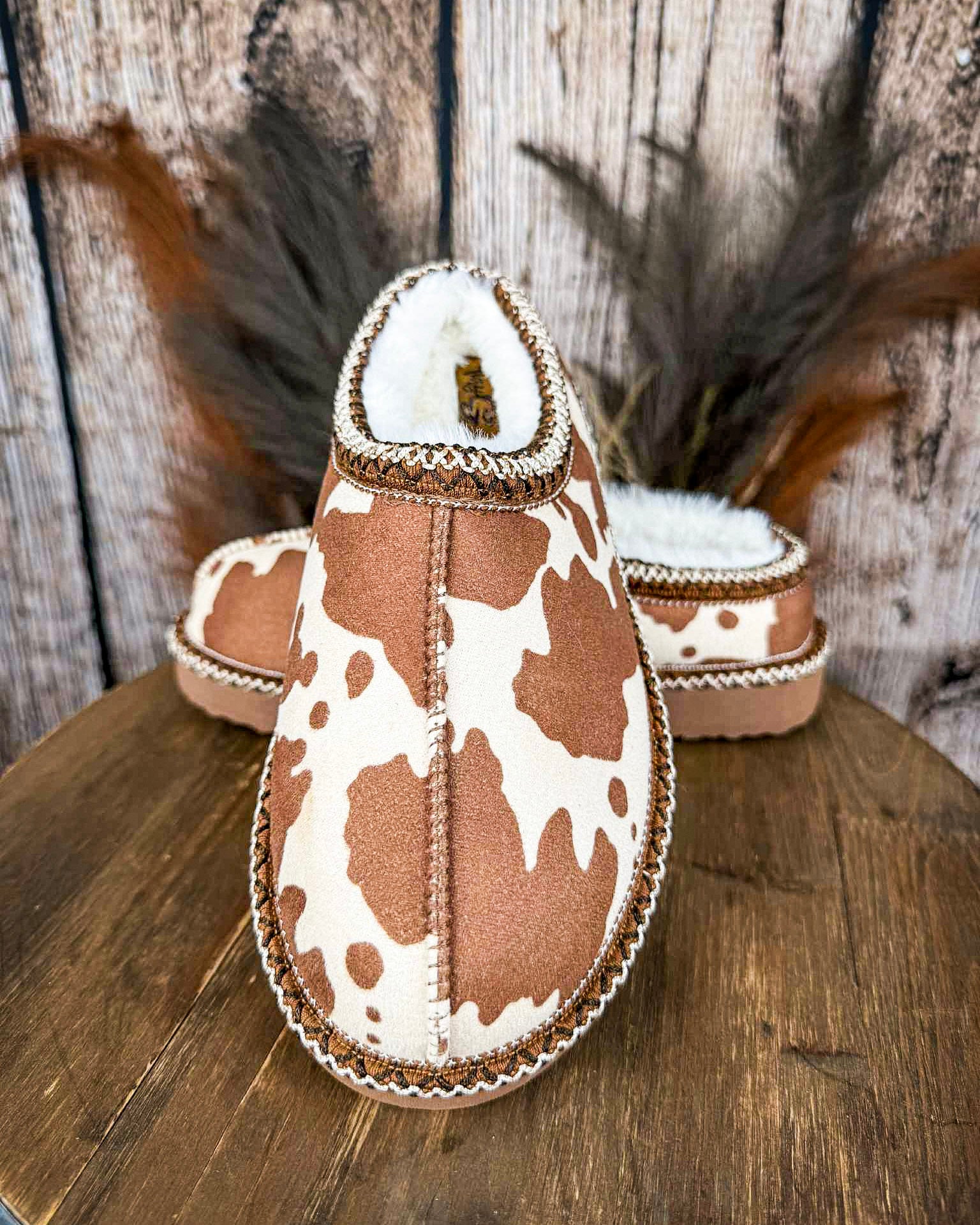 Women’s western cow print slippers