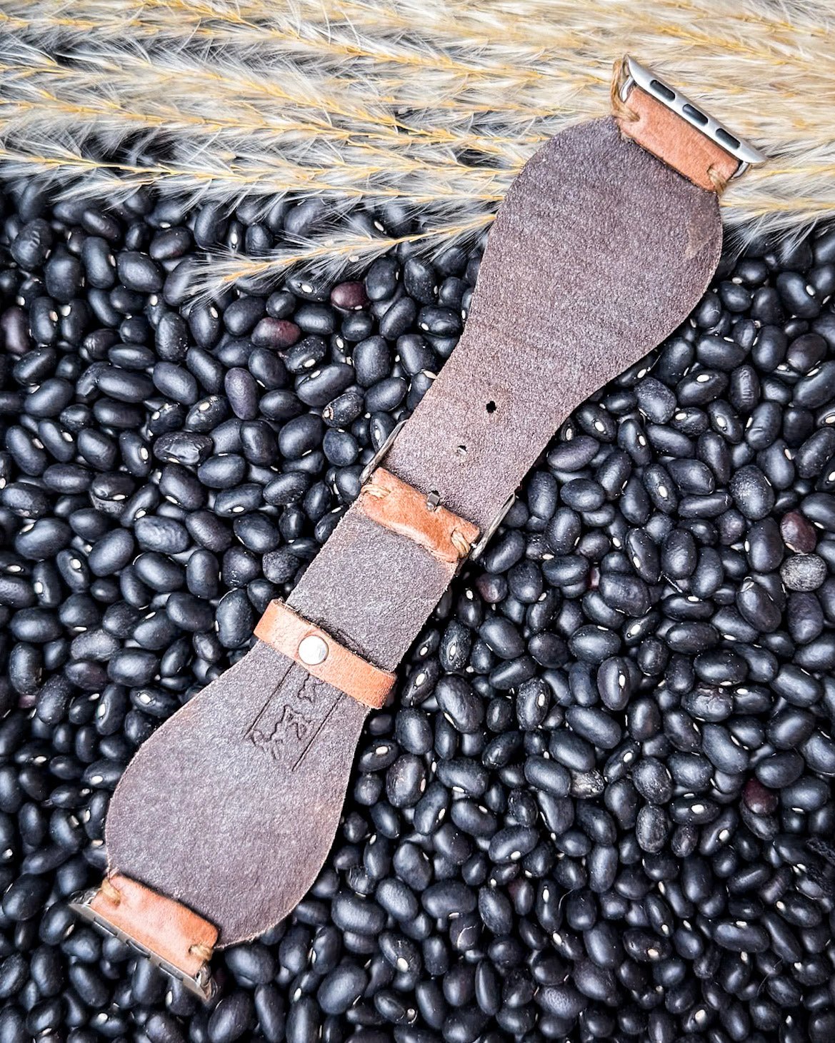 Give your smartwatch a true western upgrade with the Lone Star Hand Tooled Leather Watch Band from Myra Bag. Crafted from 100% genuine goat leather, this band blends everyday function with timeless craftsmanship for a look that’s rugged, refined, and built to last.