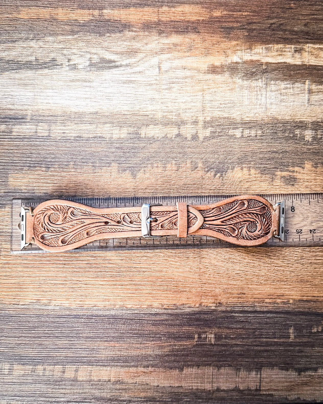 Crafted with detail and made to last, the Lone Star Hand Tooled Leather Watch Band is a perfect blend of tradition and style—an everyday essential with western soul.