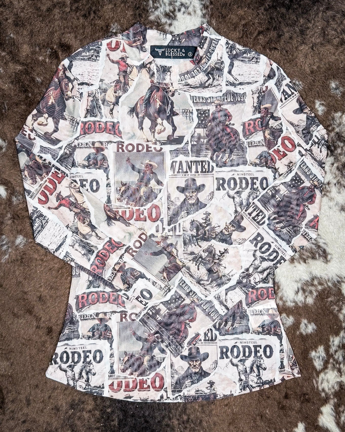 Say hello to your new favorite statement piece. The Rodeo Collage Mesh Top brings bold western energy and vintage grit together in one head-turning design that’s as wearable as it is unforgettable. From the dusty rodeo posters to the classic "Wanted" print, this top tells a story—and it wears like a dream.