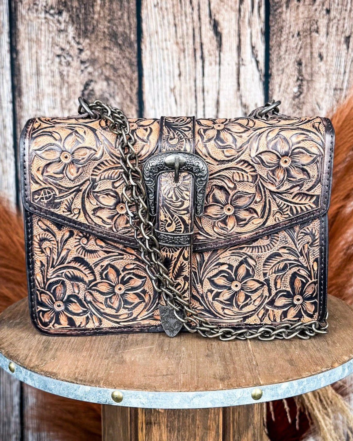 Crafted by hand using full-grain leather, this shoulder bag brings a bold mix of elegance and western grit. The intricate floral tooling tells a story that nods to tradition, but with a modern edge. No two bags are quite the same—the antique finish dances between deep bronze and weathered chestnut, creating subtle shifts in tone that make each one beautifully unique. Whether you’re headed out for dinner or roaming through the market, this bag turns heads without ever trying too hard.
