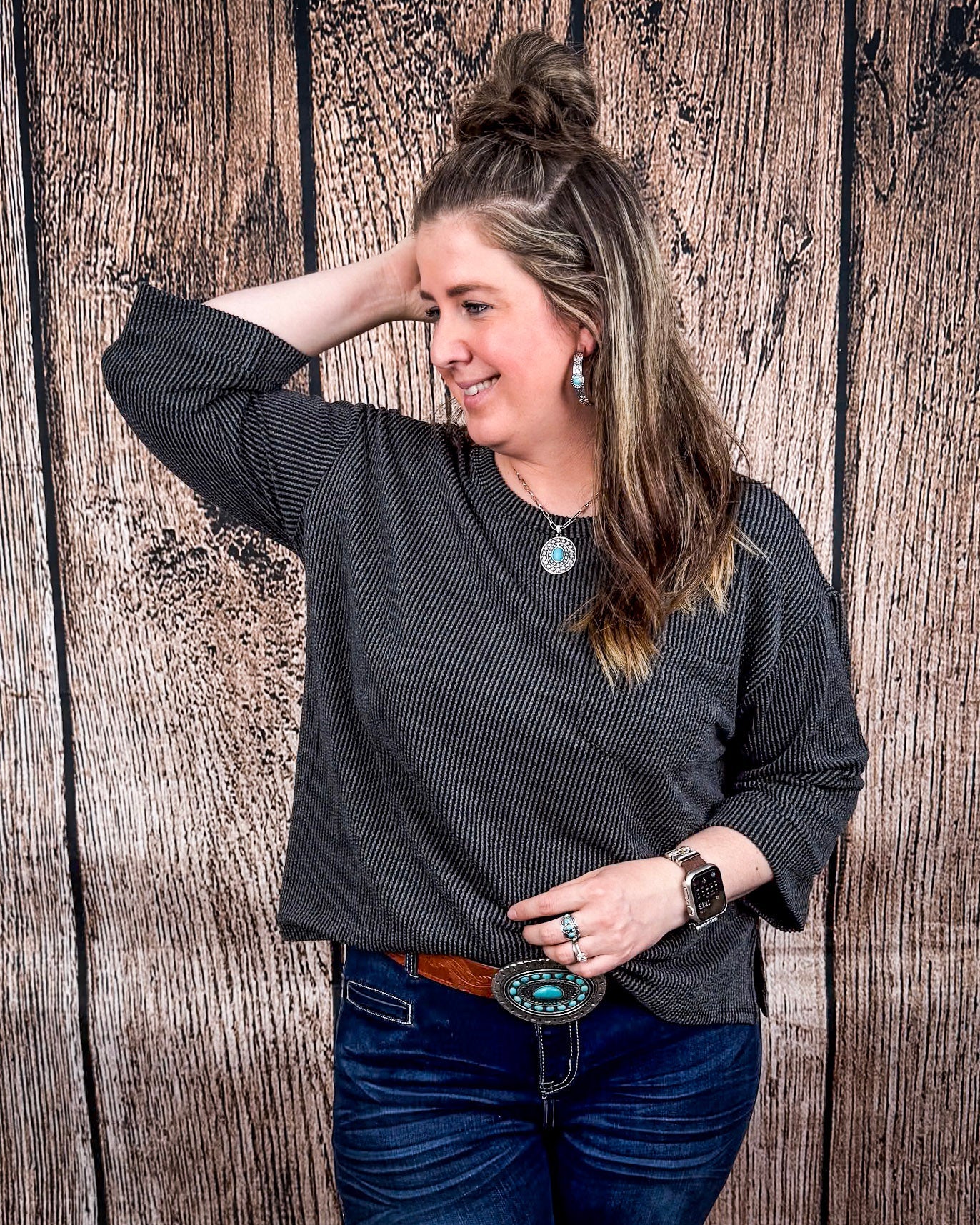 The front pocket adds a casual touch, while the scoop neckline keeps things feminine and easy to accessorize. Whether you're heading to work, grabbing lunch with a friend, or just running errands, The Ellis Top in Black is one of those pieces you’ll feel good in every single time.