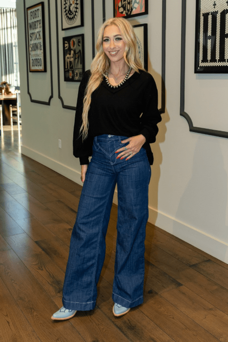 And let’s talk about black. It’s classic, always flattering, and works with absolutely everything. Whether you’re pairing it with denim and turquoise for that timeless western look or tucking it into a skirt with boots for a night out, The Hadley Top in Black gives you that clean, confident base for whatever the day brings.
