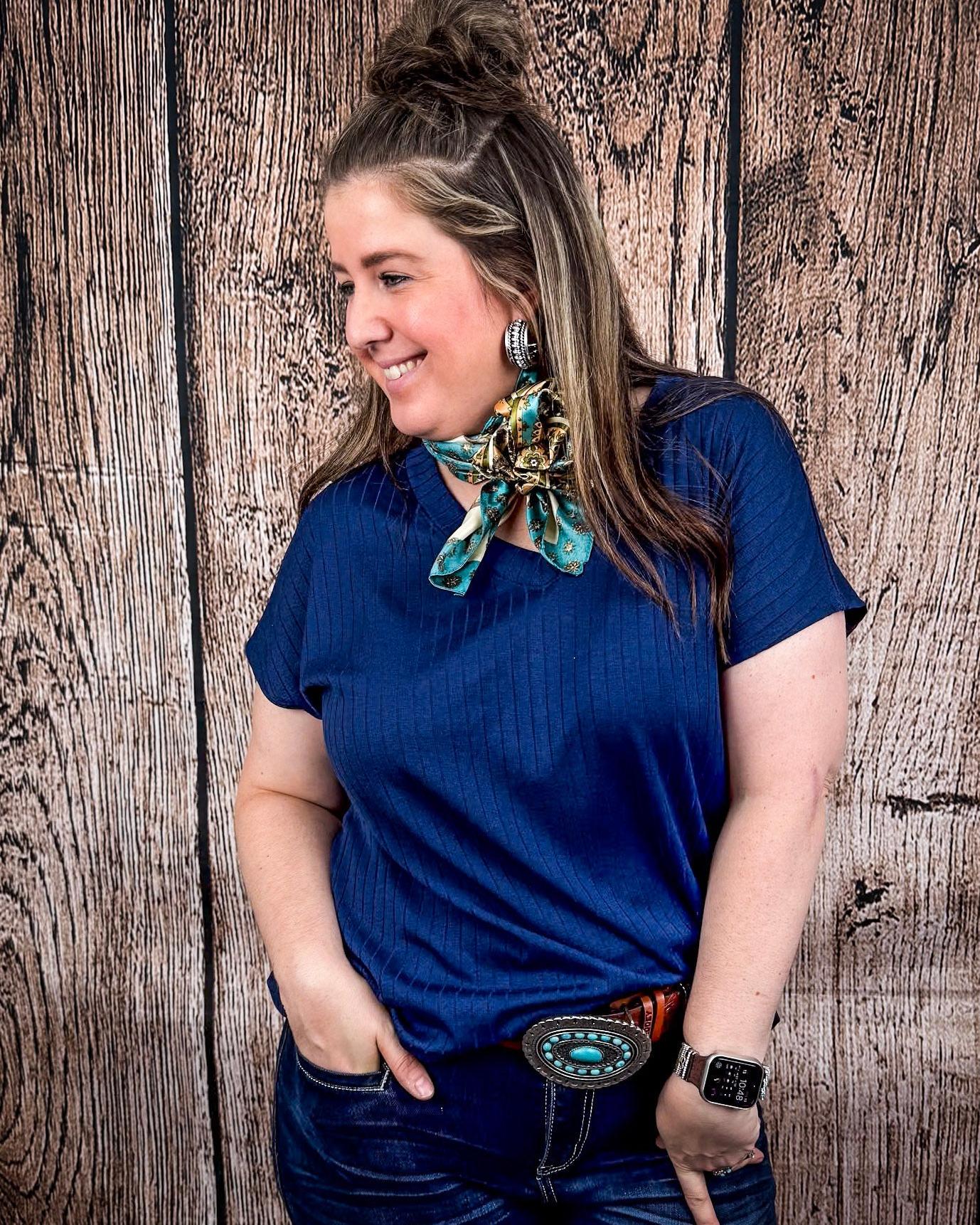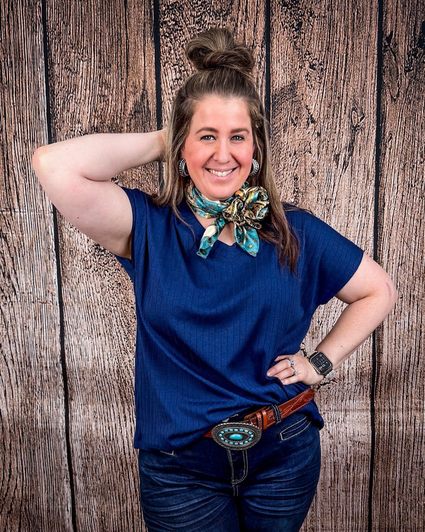 This Navy color brings a bold, grounded tone to the look. It's rich without being loud and pairs beautifully with denim, silver or turquoise jewelry, and neutral layers. Whether you wear it with shorts in the summer or layer it under a jacket in the cooler months, Navy adds that just-right pop of color that feels classic and confident.