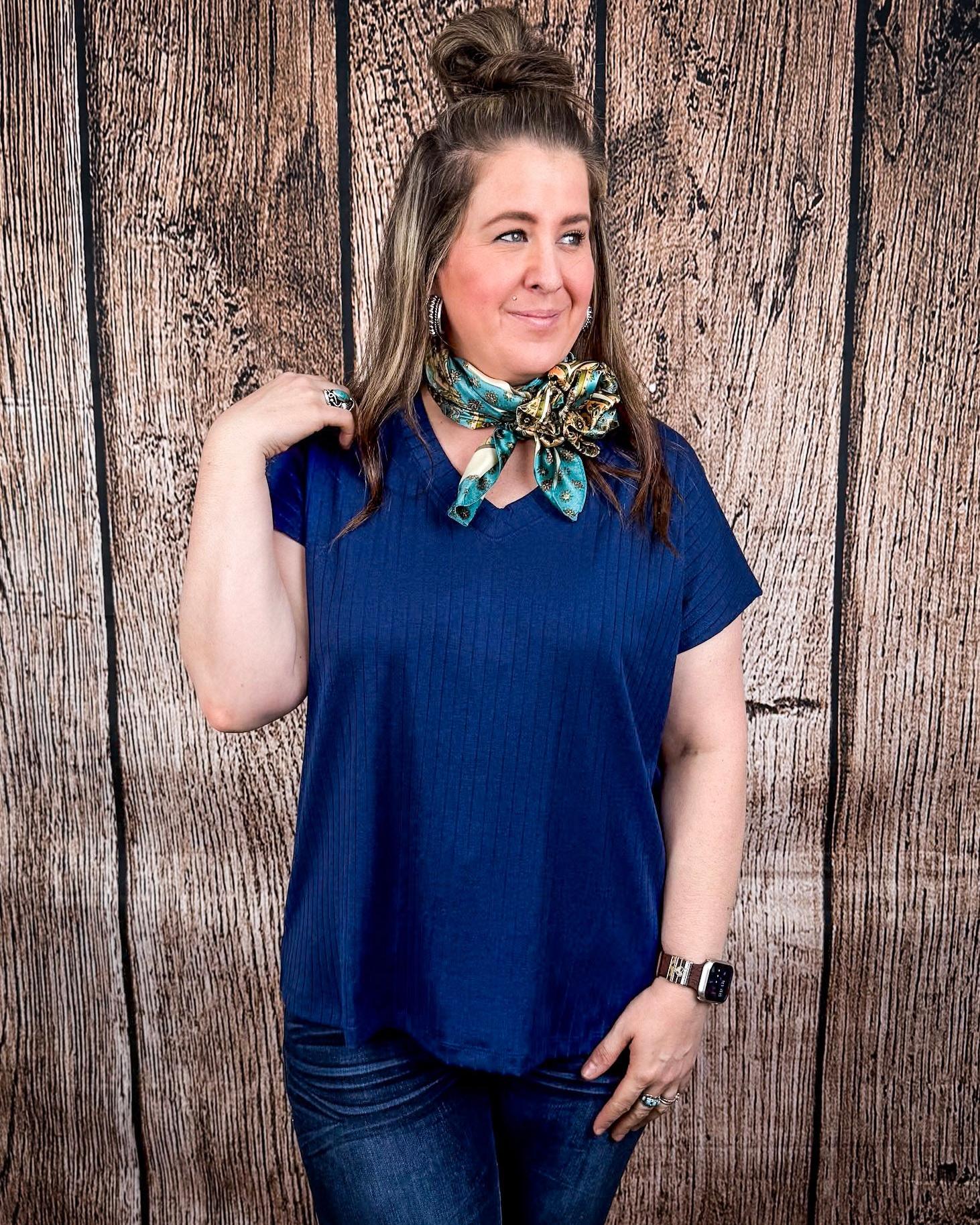 Easy, laid-back, and full of charm—The Thatcher Top in Navy is that comfy favorite you’ll wear on repeat. With its thick ribbed texture, casual v neckline, and relaxed fit, this top is a no-fuss staple that looks good with just about everything. It’s the definition of easy style, whether you’re running errands, heading to brunch, or packing for a weekend away.