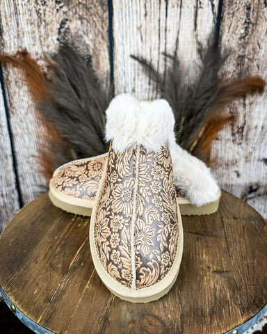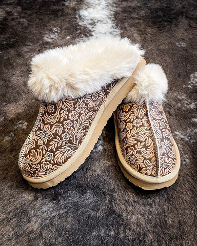 Women’s western slippers with faux fur lining