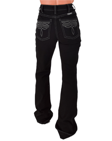 Meet your new go-to black denim: the Black Boot Stitch Trouser by Cowgirl Tuff. Clean, confident, and ultra-flattering—these trousers bring serious style to your everyday wardrobe without sacrificing comfort. Designed for the gal who wants something elevated yet effortless, these are more than just a basic black jean. They're a statement piece, ready to dress up or down depending on your mood.