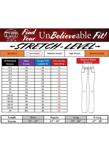 Fit Tip: Every Cowgirl Tuff style fits a little different—and that’s exactly why we include a specific size chart for each style right here on the page. Be sure to check it out before you add to your cart so you can snag the perfect fit the first time.
