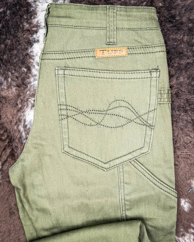 The soft, stretch flannel lining provides cozy warmth without adding bulk, making these jeans perfect for cold weather. Finished in a rich army green hue, they bring a rugged yet refined look to your Western wardrobe. The bootcut style pairs perfectly with your favorite boots, while the seven-pocket design offers function and versatility for work or everyday wear.