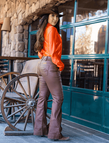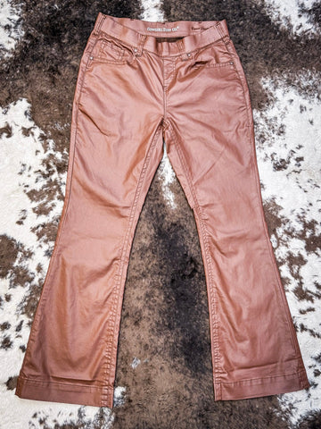 If you’re ready to spice things up with something bold yet easy to wear, the Cowgirl Tuff Brown Sugar Pull-On Trouser Jeans are your new go-to. Equal parts comfort and statement, these faux leather trousers are made for the woman who’s not afraid to stand out—whether she’s catching a concert, heading to a rodeo, or turning a casual night into something a little extra.