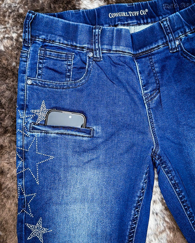 If you’ve been lookin’ for jeans that sparkle like a starry night and feel as comfy as your favorite rodeo tee, say hello to the Cowgirl Tuff Pull On Stars Trouser Jeans—the perfect blend of western grit and glitzy charm.