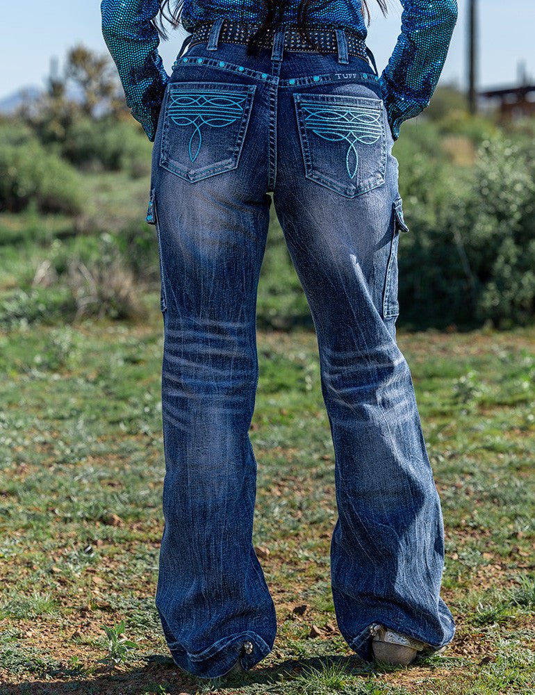 Crafted from Cowgirl Tuff’s premium 12oz low stretch denim, these trousers offer a structured feel with a snug, supportive fit. The fabric holds its shape wear after wear, making them ideal for long days when you still want to look put together. The high rise sits comfortably at the waist, providing a secure fit that pairs well with tucked-in tops, cropped layers, or statement belts.
