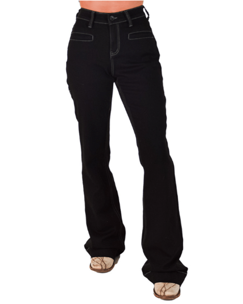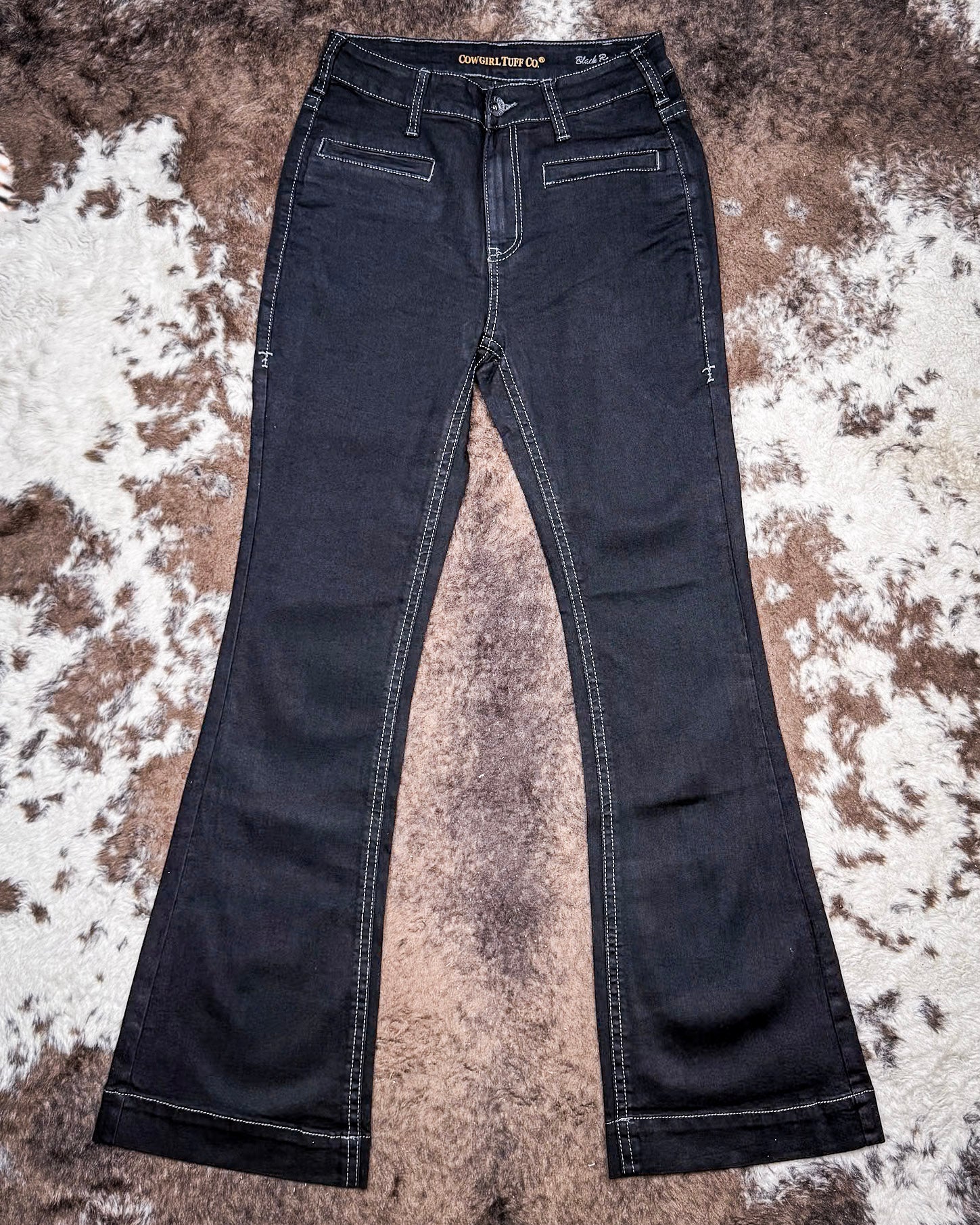 Meet your new go-to black denim: the Black Boot Stitch Trouser by Cowgirl Tuff. Clean, confident, and ultra-flattering—these trousers bring serious style to your everyday wardrobe without sacrificing comfort. Designed for the gal who wants something elevated yet effortless, these are more than just a basic black jean. They're a statement piece, ready to dress up or down depending on your mood.